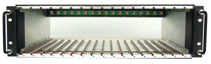 這是一個標(biāo)準(zhǔn)的19英寸寬gsdt-ch底盤。底盤是3個機架單元高有17槽容納所有模塊。背板接口可以提供模塊間的通信和分布。